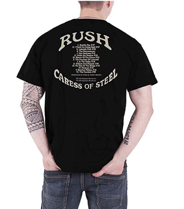 Rush T Shirt Caress of Steel Track List Band Logo New Official Mens Black